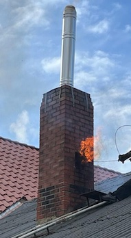 Nicht mit Wasser Löschen, der entstehende Wasserdampf kann den Schornstein beschädigen und die Flammen könnten in das Gebäude übergreifen.
